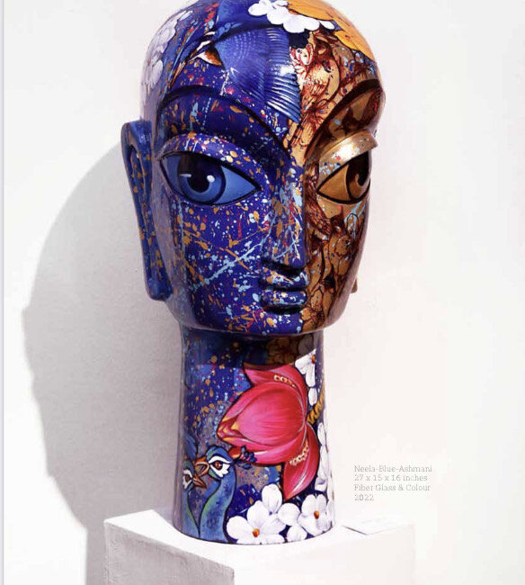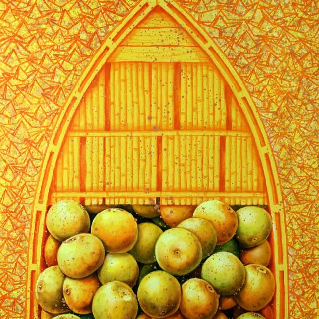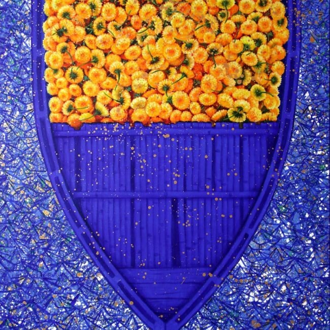 From Gomukh to Gangasagar, Sachindranath Jha has captured the different hues, tones and the drama of the Ganga. He has travelled to all the five important ‘teerthasthanas’ of the Ganga – Nashik, Ujjain, Prayagraj, Varanasi and Haridwar – and thus created his oeuvre. His pictorial language is undoubtedly local vernacular, the materials he uses are traditional. However, he has brought his living experience into the art he creates. The legends and stories of Ganga have inspired the art practice of Bihar-based interdisciplinary artist Sachindranath Jha.